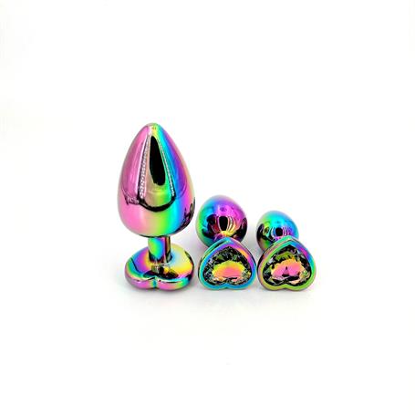 Kalp Mücevherli Tasarım: Şık ve estetik görünüme sahip, gökkuşağı rengi ve kalp mücevheri ile anal pluggınıza zarif bir dokunuş katın.