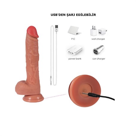 USB Şarjlı 22 cm Belden Bağlamalı İleri Geri Hareketli Kumandalı Gerçekçi Silikon Vantuzlu Penis Ürün Kodu:BDM1310B